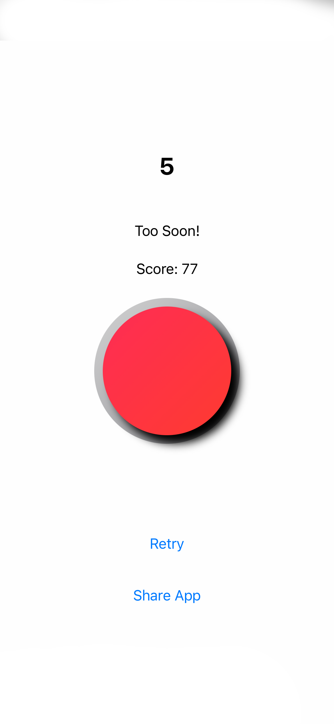 A Button Game was a small game that I released for iPhones and iPads which simply gives you an amount of seconds, and you're tasked with holding a button for the given amount of time purely off your own mental clock. Compete with your friends to see who is best at keeping track of time with this incredibly simple game!