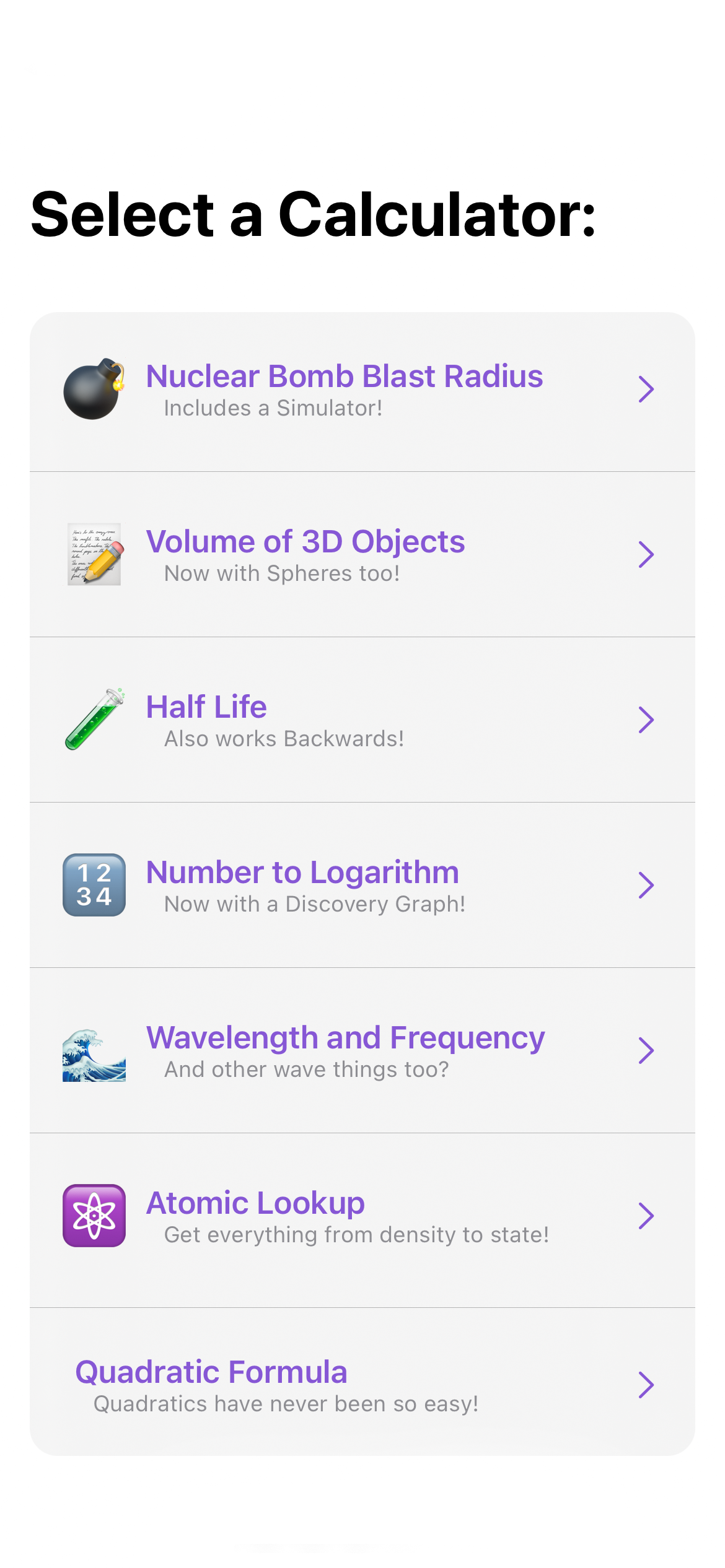 life, wavelength or fequency, quadratic formula, volume of 3D objects, converting numbers to